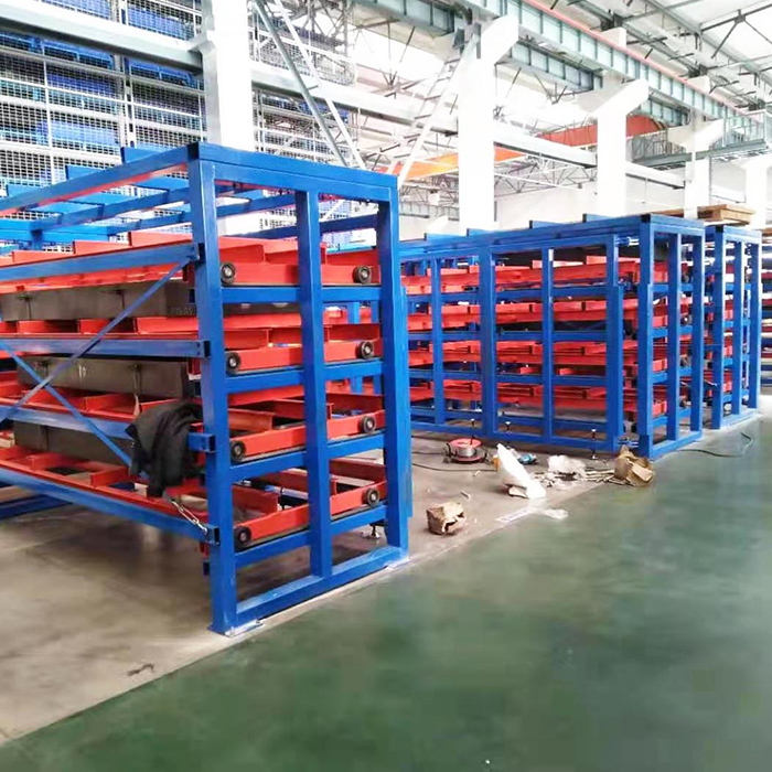 3.  Drawer-Type Design: The "drawer-type" design implies that the racking system features pull-out drawers or shelves. These drawers can be extended fully from the racking system, allowing for easy loading and unloading of molds. This design optimizes space and accessibility, making it convenient for operators to manage and handle the molds efficiently.